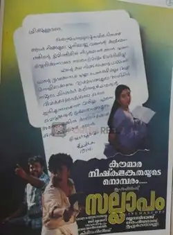 Sallapam is a 1996 Malayalam-language romantic drama film directed by Sundar Das and written by A. K. Lohithadas, starring Manoj K. Jayan, Dileep and Manju Warrier in the lead roles.The music was composed by Johnson. The film was remade in Telugu as Egire Paavurama.[1]