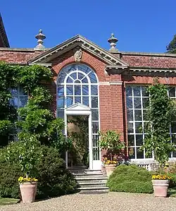 The house is in Palladian style. The north side has a central stone portico. The south side, facing the garden, has a façade of 7 bays with a three-bay pediment; the central door has a stone pediment with ionic pilasters. Sir Woolmer White, 1st Baronet, added a west wing, and an east wing containing an orangery.[1][2]