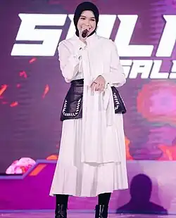 Salma Salsabil 'Aliyyah Putri Mandaya (born 12 February 2002)[1] commonly known as Salma Salsabil, is an Indonesian singer-songwriter from Probolinggo, East Java. She won the twelfth season of Indonesian Idol broadcast by the television broadcaster RCTI in 2023, as well as being the first female singer wearing the hijab in the history of Indonesian Idol to win the competition.[2][3] After winning, she performed the winning song as well as her debut single entitled "Menghargai Kata Rindu" which was released on 19 May 2023, with a different version from Nabila Taqiyyah, through the record label Universal Music Indonesia.[4]