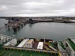Salt Island is part of the port of Holyhead and almost the whole extent of the island is used as a passenger, car and freight terminal and berths for ferries to and from Ireland. Both Irish Ferries and Stena Line sail from Salt Island to the Port of Dublin. The Holyhead lifeboat station is on the island. The Admiralty Arch, the end of the A5 which links London to Holyhead is located very close to the southern tip of the island. This was opened in 1826 when the last section of the road the Menai Suspension Bridge was completed. Access to the island as a whole is strictly monitored and is virtually impossible for pedestrians to enter.