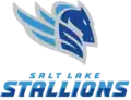 The western four teams' names and logos were revealed on September 25, 2018, with Salt Lake as the Stallions with the colors of blue, deep sky blue, and silver.[9] The name is inspired by the land speed records set at the Bonneville Salt Flats, while the colors represent aspects of Utah's geography like Great Salt Lake and the Wasatch Range.[10]