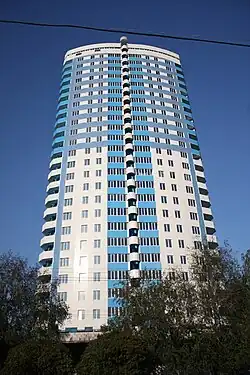 Saltivka (Ukrainian: Салтiвка) is a large residential area located in the northeastern region of Kharkiv in eastern Ukraine. It covers most of the eponymous Saltivskyi District with parts extending into the Kyivskyi District and Nemyshlyanskyi District. It is sometimes called the Saltivskyi Masyv, as it realizes a soviet urban planning concept which consist of several different neighborhoods with similar architectural design.[1] Despite its reputation as a deprived residential area with outdated and dilapidated housing, more than a third of Kharkiv's total population resides within its boundaries. According to various estimates, some 400–800,000 people used to live there, making it one of the largest residential areas in Ukraine.