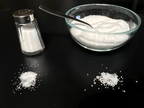 Salt is essential to the health of humans and other animals, and it is one of the five basic taste sensations.[37] It is known to uniformly improve the taste perception of food, including otherwise unpalatable food.[38] Salt is used in many cuisines, and it is often found in salt shakers on diners' eating tables for their personal use on food. Salt is also an ingredient in many manufactured foodstuffs. Table salt is a refined salt containing about 97 to 99 percent sodium chloride.[39][40][41] Usually, anticaking agents such as sodium aluminosilicate or magnesium carbonate are added to make it free-flowing. Iodized salt, containing potassium iodide, is widely available. Some people put a desiccant, such as a few grains of uncooked rice[42] or a saltine cracker, in their salt shakers to absorb extra moisture and help break up salt clumps that may otherwise form.[43]