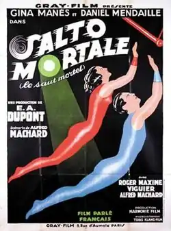 Salto Mortale is a 1931 French-German drama film directed by Ewald André Dupont and starring Gina Manès, Daniel Mendaille and Léon Roger-Maxime. It was the French-language version of the German production Salto Mortale.[1]