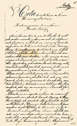 On February 13, 1891, Salvador asked to be relieved of his duties on the Board,[1] and on October 20 of the same year, he was elected to the first City Council, taking office on December 15 and remaining in office until September 1896. However, political unrest continued, and on June 25, 1892, the second Revolt of the Settlers broke out, which deposed the council and took over the command of the municipality. On July 5, after intervention by the State Government, the Council reassumed control, but it was not until September 26 that the solemn and definitive reinstallation took place.[23]