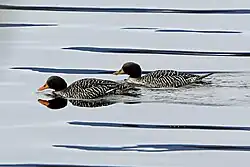 When Walter Rothschild and Ernst Hartert first described Salvadori's teal in 1894, they placed it in the concurrently created monotypic genus Salvadorina.[2] It has no subspecies.[3] Initially, it was generally placed with South America's torrent duck and New Zealand's blue duck—two species of similar ecological niches—in a tribe called Merganettini.[4] In the 1940s, Ernst Mayr moved the species to the dabbling duck genus Anas, based on several anatomical features.[5]