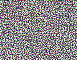 Jiao, Torquato, Joseph Corbo and colleagues presented the first example of disordered hyperuniformity found in biology, namely, photoreceptor cells in avian retina.[78] Birds are highly visual animals with five different cone photoreceptor subtypes, yet their photoreceptor patterns are irregular, which less than ideal to sample light. By analyzing chicken cone photoreceptors, consisting of five different cell types, it was found that the disordered patterns are hyperuniform, but with a twist - both the total population and the individual cell types are simultaneously hyperuniform. This multihyperuniformity property is crucial for the acute color vision possessed by birds. Elsewhere, Lomba, Torquato and co-workers presented the first statistical-mechanical model that rigorously achieves disordered multihyperuniformity in ternary mixtures to sample the three primary colors: red, blue and green.[79]