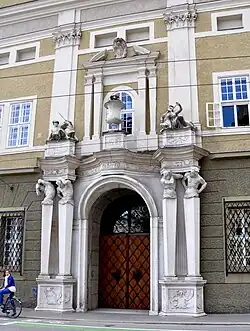 Music festivals were held in Salzburg at irregular intervals since 1877 by the International Mozarteum Foundation but were discontinued in 1910. A festival was planned for 1914, but it was cancelled at the outbreak of World War I. In 1917, Friedrich Gehmacher and Heinrich Damisch formed an organization known as the Salzburger Festspielhaus-Gemeinde to establish an annual festival of drama and music, emphasizing especially the works of Mozart.[2] At the close of the war in 1918, the festival's revival was championed by five men now regarded as its founders:[3] the poet and dramatist Hugo von Hofmannsthal, the composer Richard Strauss, the scenic designer Alfred Roller, the conductor Franz Schalk, and the director Max Reinhardt, then intendant of the Deutsches Theater in Berlin, who had produced the first performance of Hofmannsthal's play Jedermann at the Berlin Zirkus Schumann arena in 1911.