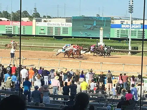 Sam Houston opened on April 24, 1994, and was the first Class 1 Horse Racing venue constructed in Texas.[1] It cost approximately $90 million to construct. The Park was considered the fastest growing race track in America based on handle growth and quality of racing program over the past year several years.[2] The Park is named for Sam Houston who was an influential general and later president of the Republic of Texas. Kirwin Drouet, the original founder of Sam Houston Race Park, named the Park after him because of his significance to Texas and the fact that the track is located in Houston on Sam Houston Tollway (Beltway 8).