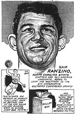 Samuel Salvador Ranzino (June 21, 1927 – March 13, 1994) was an American college and professional basketball player. He was an All-American guard at North Carolina State University and played one season in the National Basketball Association (NBA) with the Rochester Royals.