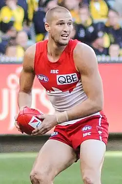 Sam Reid (born 27 December 1991) is a former Australian rules footballer who played for the Sydney Swans in the Australian Football League (AFL). He was drafted to Sydney with the 38th selection in the 2009 AFL draft,[1] becoming a third generation footballer at AFL/VFL level. His grandfather Bruce Reid senior played for Footscray, his father Bruce Reid, for Footscray and Carlton[2] and his uncle John Reid for Melbourne, Footscray and Sydney. He is also the younger brother of Collingwood premiership player Ben Reid.[2][3]