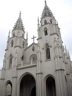 The commercial center of Sama is Antonio María Dorado street. On the banks of the Nalón River is Dorado Park, from the period between centuries and included in the Cultural Heritage of Asturias. The parish church is in the neo-Gothic style, rebuilt after the Civil War and dedicated to James the Great.[6] Today the industrial and economic crisis of the mining regions has reduced the commercial activity that characterized Sama until a few decades ago, also affecting its demographic weight, going from the 15,000 inhabitants it once had to the current 8,500. It has two important cultural centers, the Cine Felgueroso Audiovisual Center and the museum of Pozo Fondón-Archivo de Hunosa, as well as a Cultural Center. Sama also houses the Nalón Valley Music Conservatory, a health center, Sanatorio Adaro and a Secondary Education Institute. It is also the seat of the Langreo Courts.