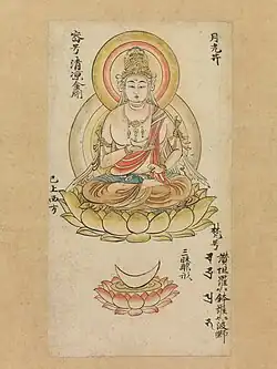 The Samādhirāja Sūtra (King of Samādhis Sūtra) or Candrapradīpa Sūtra (Moonlamp Sūtra) is a Buddhist Mahayana sutra. Some scholars have dated its redaction from the 2nd or 3rd century CE to the 6th century (the date of the earliest manuscript found), but others argue that its date just cannot be determined.[1][2][3][4] The Samādhirāja is a very important source for the Madhyamaka school and it is cited by numerous Indian authors like Chandrakirti, Shantideva and later Buddhist authors.[4][5][6] According to Alex Wayman, the Samādhirāja is "perhaps the most important scriptural source for the Madhyamika."[7] The Samādhirāja is also widely cited in Tantric Buddhist sources, which promote its recitation for ritual purposes.[4][8] A commentary to the sutra, the Kīrtimala (Tibetan: grags pa'i phreng ba), was composed by the Indian Manjushrikirti and this survives in Tibetan.[6][9]