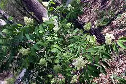 | Sambucus racemosa subsp. pubens in flower in spring | |