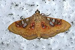 - ^ Nuss, Matthias; Landry, Bernard; Vegliante, Francesca; Tränkner, Andreas; Mally, Richard; Hayden, James; Bauer, Franziska; Segerer, Andreas; Li, Houhun; Schouten, Rob; Solis, M. Alma; Trofimova, Tatiana; De Prins, Jurate & Speidel, Wolfgang (2003–2014). "GlobIZ search". Global Information System on Pyraloidea. Retrieved July 15, 2014.