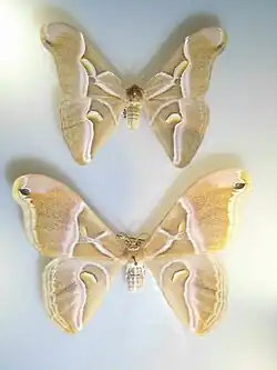 | Bottom: Samia canningi (female), top: Samia cynthia (female) | |