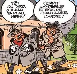 Comics artist Arthur Berckmans, better known under his pen-name Berck, joined the staff of Spirou magazine in 1968 after working at rival Tintin magazine for almost ten years. His first strip at Spirou was the short-lived Mulligan, the adventures of an Irish tugboat captain in the docks of 1930s New York City. Berck wanted to draw adventures featuring gangsters, cops and robbers and it was suggested that he work with Raoul Cauvin, who had shown promise with the writing of the series Les Tuniques Bleues (French for "The Blue Coats").[3]