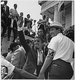 Davis was a registered Democrat and supported John F. Kennedy's 1960 election campaign as well as Robert F. Kennedy's 1968 campaign.[46] He went on to become a close friend of President Richard Nixon (a Republican) and publicly endorsed him at the 1972 Republican National Convention.[46] Davis also made a USO tour to South Vietnam at Nixon's request.