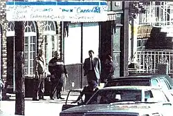 Gotti and Gravano arrived at the restaurant shortly before 5 o'clock and, after circling the block, parked their car across the intersection and within view of the entrance.[11] Around 5:30, Gravano spotted Castellano's Lincoln Town Car at a nearby intersection and, via walkie talkie, alerted the team of hitmen stationed outside the restaurant of Castellano's approach.[21] Castellano's driver, Thomas Bilotti, pulled the car up directly in front of the entrance. As Castellano and Bilotti exited the Lincoln, they were ambushed and killed in a barrage of bullets.[21] As the hat-and-trench-coat-adorned men slipped away into the night, Gotti calmly drove the car past the front of the restaurant to get a look at the scene.[7] Looking down at Bilotti's body from the passenger window, Gravano remarked, "He's gone."[21]