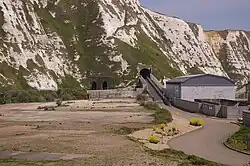 It is accessible by the public via a single-lane road tunnel controlled by traffic lights, which crosses over the South Eastern Main Line that is running in the Shakespeare Cliff tunnel underneath. Visitor facilities are provided, including car parking, toilets and a café.