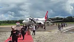 In the early 2000s, the airport underwent further upgrades, including a runway extension to accommodate larger aircraft such as the ATR-72 and Boeing 737-500.[3] Following these improvements, Merpati Nusantara Airlines launched a new route from Sampit to Surabaya using Boeing 737-200 aircraft, operating four times per week. In 2009, Kalstar Aviation introduced a multi-leg route connecting Banjarmasin, Sampit, Pangkalan Bun, Ketapang, and Pontianak using ATR-42 aircraft, with daily service.[3] However, both routes were eventually discontinued as the airlines ceased operations one after another in the following years.