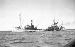 While Sampo had not been damaged in the war, she was docked at the Hietalahti shipyard for extensive maintenance and repairs — when she left to the port of Hanko in mid-February 1919, 69 bottom plates had been replaced.[16] In December 1922 Sampo struck a rock in the port of Loviisa and her bow propeller shaft was damaged, but there was no time for repairs and for the rest of the season she had to assist ships to the port of Helsinki without her bow propeller.[17] Another incident occurred on 24 March 1926 when the bow propeller of Sampo hit a stone bank in the port of Helsinki, came loose and dropped to the bottom. It was found after searching for a couple of days and winched on board. On 30 March, while Sampo was assisting a Finnish steamship Albert Kasimir, the stern propeller shaft snapped when the engine was reversed and the propeller dropped to the bottom. While the icebreaker still had its bow propeller, it was of no use as it was waiting for installation on the foredeck. Murtaja towed the immobilized icebreaker to Hanko on the following day and to Helsinki for repairs on 20 April.[18]
