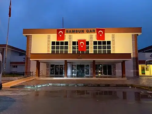 The station serves the Samsun-Amasya Regional Trains operated by TCDD Tasimacilik.[2] The station is connected to Samsun via roadway and public transit. There is a Samsun Tram stop located in front of the station. A freight ferry service operated by UPM and Turkish State Railways operates between Samsun and Kavkaz.[3] Service to Ankara and Istanbul requires a transfer at Sivas.