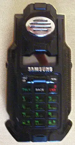 The Samsung SPH-N270 or Matrix phone is a bar style mobile phone released in 2003, made to resemble the phone used in The Matrix Reloaded. The design crew of the Matrix worked closely with Samsung to develop a phone whose features and release date would coincide with the movie. The SPH-N270 was not intended as a mainstream phone for everyday use. Instead, it was marketed solely to fans of the series as a piece of rare, high quality merchandise.