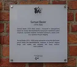 Samuel Besler (15 December 1574, in Brieg – 19 July 1625) was a German composer. He was cantor at St. Bernhardinus, Breslau, in 1602, then rector of the Gymnasium from 1605. As with Jakob Meiland in the generation before him, and Melchior Vulpius in his own generation, his St. Matthew Passion follows the model of Johann Walter's Lutheran historia, but with more elaborate choral numbers.[1]
