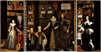 During the late 1590s to first years of the 1600s, Daniel took on the role of tutor to the young Anne Clifford, daughter of the Countess of Cumberland, the woman to whom he had dedicated A Letter to Octavia. Anne Clifford maintained a sense of gratitude and affection toward Daniel through the rest of her life. She included his portrait and volumes of his works in the family triptych she commissioned that has come to be known as The Great Picture.[32]