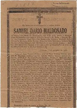 26. ^ admin (October 6, 2020). "Efeméride 11: Fallecimiento Samuel Darío Maldonado – Familia Maldonado". Retrieved June 11, 2023.