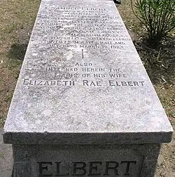 Elbert County and the town of Elberton were named for him.[37] There is also an Elbert Ward and an Elbert memorial in Savannah. In 1971 a private school named the Samuel Elbert Academy was chartered in Elberton, Georgia. Many markers have been set up by the Daughters and Sons of the American Revolution, the Society of Masons and the Georgia Historical Commission honoring Samuel Elbert.[38][39][40]