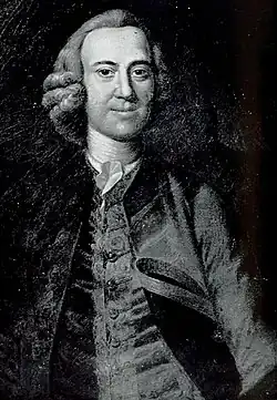 In 1742, Samuel Galloway married his first cousin, Anne Chew, daughter of Samuel Chew of Maidstone,[1] despite in the Quaker faith, marriage between first cousins was considered controversial.[6] The couple would have five children: Mary, John, Samuel IV, Benjamin[7] and Anne.[3] Despite being a contemporary of and maintaining a business and warm relationship with George Washington, Galloway was a loyalist.[3][8][9] This would put him at odds with his youngest son Benjamin, who was considered a "Republican since his youth".[7]