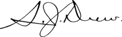 Drew married Lizzie B. Parsons and had a daughter, Alberta. He was active in Freemasonry and was a member of the Knights of Pythias. Drew was an active Methodist.[1] He died on January 22, 1926, and was buried in Oakwood Cemetery in Joliet.
