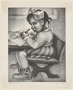 Writing Lesson by Samuel Joseph Brown, Jr. 1938. Published by Works Progress Administration (WPA), Federal Art Project, Philadelphia, 1935 - 1943