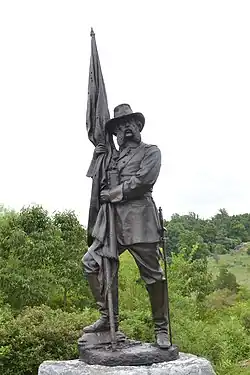 In 1988, a statue of Crawford was dedicated at Gettysburg depicting him clutching a bullet-riddled American flag.[10]