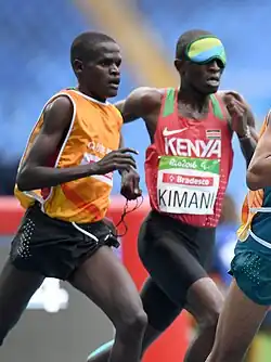 ![]() Samwel Mushai Kimani and his guide James Boit run 5000 m at the 2016 Paralympics | |