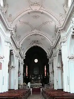 The interior of the church was densely decorated with stucco by Fortunato Rusca and Carlo Bossi. The church conserves 15 canvases depicting the Mysteries of the Rosary (circa 1576-1581) by Vincenzo Campi. It has frescoes depicting the Doctors of the Church (1538–39) by Michelangelo Anselmi. The main altar has mid-18th-century gilded bronze statues by Giovanni Battista Febbrari. The church has a rich collection of sacred objects.[2]