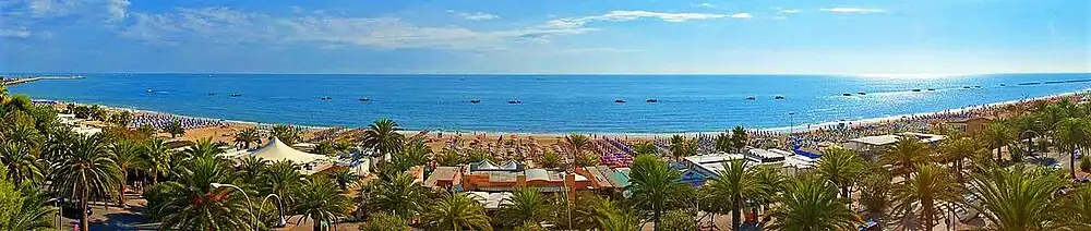 San Benedetto del Tronto is a city and comune in Marche, Italy. Part of an urban area with 100,000 inhabitants, it is one of the most densely populated areas along the Adriatic Sea coast.[3] It is the most populated city in Province of Ascoli Piceno, with 47,019 (December 2024).[4] Its port is one of the biggest on the Adriatic; it is the most important centre of Riviera of the Palms, with over 8,000 Phoenix canariensis, Washingtonia and P. sylvestris plants. San Benedetto del Tronto's economy depends on tourism, aimed above all at families.[5][6]