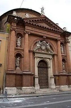 Construction of this church took place from 1612-1623, at the site of a chapel dedicated to Saint Filippo e Giacomo, designed by Alberto Schiatti, for the hospital of Santa Anna, which once extended parallel to the facade. The San Carlo church was designed by Giovanni Battista Aleotti, commissioned by Cardinal Carlo Emmanuele Pio.[1]