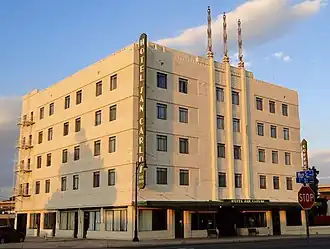 The San Carlos Hotel is a historic hotel in Yuma, Arizona. Its construction cost $300,000,[2] and it was completed in 1930.[3] It was five stories high, with 107 bedrooms.[2] It was remodelled into 59 residential apartments in the 1980s.[3] The current owner announced plans to sell the building in 2024.[4]