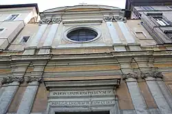 The cloister annexed to the church is entrusted to the Congregation of the Pii Operai Catechisti Rurali; it was built in the years between 1760 and 1764 by Giovanni Francesco Fiori and shows a beautiful façade with many decorative features. Above the main gate there is the following inscription: “D.O.M. Domum hanc Piorum Operariorum Clementis PP. XIII pietas a fundamentis erexit anno MDCCLXIII”