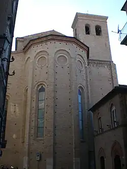A church at the site, dedicated to St Francis of Assisi, who had visited Osimo in 1215 and 1220, and was consecrated in 1234 in the Gothic-style seen on the outside.