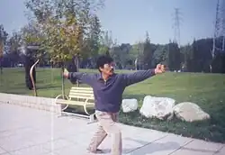 ![]() The Shízìchuí posture ("the cross-shaped fist-hammer") executed by Shifu Yú Decai. | |
