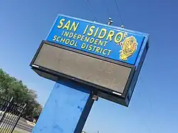 The San Isidro Independent School District is a public school district based in the community of San Isidro, Texas, United States. In addition to San Isidro, the district also serves several other unincorporated communities in rural northeastern Starr County, including: Delmita, Santa Anna,[2] El Centro, La Gloria, La Reforma, Santa Catarina, and Santa Elena.