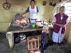 - The gueza (guelaguetza, give to receive) which is mutual support mainly in supplies or in cash between neighbors and relatives that bring to those who have a celebration, feast or compromise, such as weddings, baptisms, funerals or mayordomías. The gueza reception is a solemn ceremony in which small speeches are addressed to deliver and receive the contributions, being a usual commitment to spontaneously to reciprocate the help at the moment in which the counterpart need it.