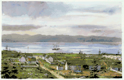 Watercolor of US Army building Roberts Redoubt on San Juan Island -