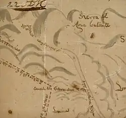 According to Mission San Juan Capistrano's application for the National Register of Historic Places, "Published oral accounts indicate that a sizable Indian settlement was located near the springs."[1] The Acjachemen (Juaneño) village at the springs was called Paala Sáqqiwvna, and the springs have been tentatively associated with the name Palasakeuna, although this correlation is disputed and may apply instead to Murrieta Hot Springs.[2] According to U.S. government geologist Gerald A. Waring's report of 1915, the springs "were formerly visited by the Indians, who built mud huts (temescals), for use as vapor-bath chambers. The springs are mentioned in the records of the Franciscan friars, who visited them when in charge of the mission at San Juan Capistrano."[3] After the missionaries came, they built an adobe structure near the springs that was used as a sort of parsonage or mission annex.[1] An old-timer recalled the springs as they were in the 1870s, writing to the Los Angeles Times, "I have been familiar with these springs and their many benefits to mankind...since 1873 and can testify to the value of their mineral waters. Back in the seventies, there was a passable trail, and the wayfarer making a pilgrimage to the healthful shrine was sure of a friendly welcome from the native Indians that frequented the place, with their sick [and] lame..."[4] In oral history interviews done in the late 20th-century, Acjachemen people described their grandparents going to the hot springs area in the autumn to collect acorns for food.[5]