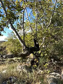 Nonetheless, the site remained an attractive destination and in the 1960s "became notorious as a hangout for hippie bathers, who were often arrested for trespassing and indecent exposure".[15] A "commune" reportedly moved in, and in addition to public nudity,[16] there were two murders and quite a bit of drug use.[10] The Orange County Sheriff's Department was summoned on a regular basis.[17] The old masonry tubs were eventually dynamited to discourage squatters,[17] and the overflow re-routed to a ditch that drained into Hot Spring Creek (a tributary of San Juan Creek).[10] During this era there were continuing but always unsuccessful efforts to add the springs to Cleveland National Forest.[18] In 1974 the county put up a barricade around the springs to reduce visitor traffic, nudity, graffiti, etc.[19]