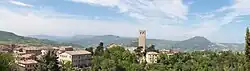 San Leo was served by the Rimini–Novafeltria railway,[4] beginning with a terminus in Torello in 1921.[5] The government of San Marino had expressed its desire for a station in the locality from the railway's planning in 1905, committing 1,000 lire annually for fifty years for the station.[6] With the exception of the years of operation of the Rimini–San Marino railway (1932–44), San Marino-Torello was the closest railway connection to San Marino.[7] On 18 June 1922, the railway was extended to Mercantino Marecchia,[5][8] with stops in Pietracuta and just after the Torrente Mazzocco.[4] The railway closed in 1960.[5] The station buildings of Torello and Pietracuta are extant, with the latter being residential property.[4]